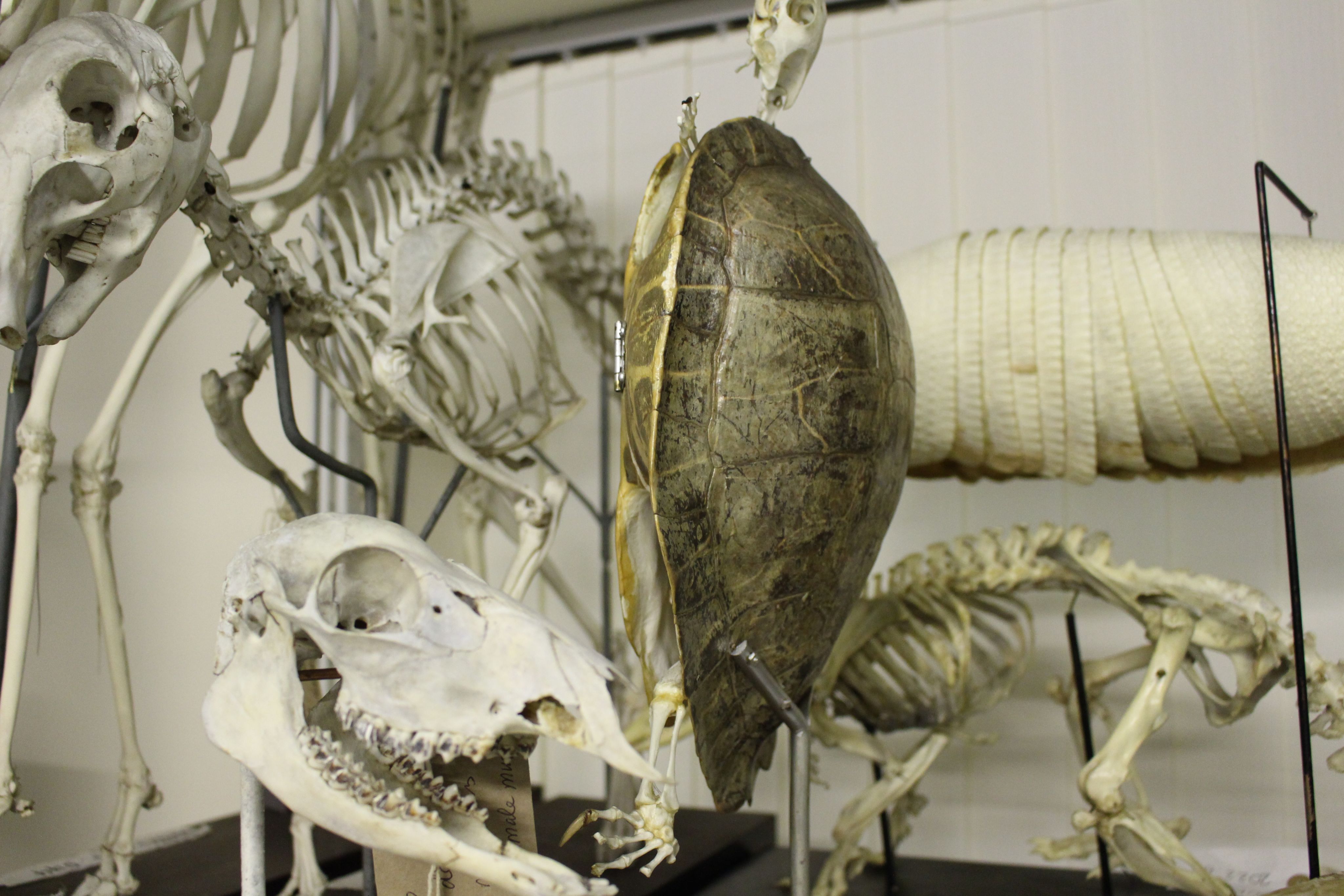 Some specimens in the collection highlight its educational purpose. For instance, on this nine-banded armadillo (Dasypus novemcinctus) the carapace (shell) has been separated to display the skeleton which is usually hidden underneath their armour-like shell.