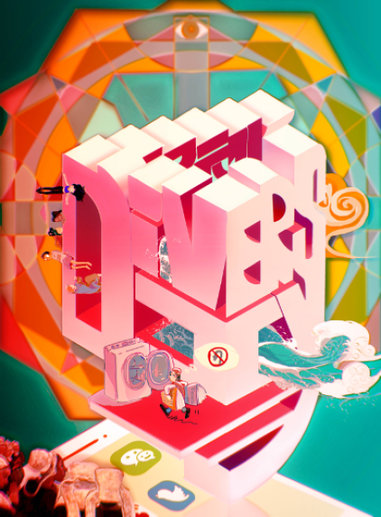 “Diversity is originated in the Age of Discovery, indicated by the waves in The Great Wave of Kanagawa. The man washing books of different culture implies the blending of cultures today. The virtual, electronic way of us inspecting this diverse world, is represented by the mobile phone filled with Apps and, the blending of virtuality and reality in Version After The Sermon. The Penrose-stair and people on it describes the continuous update of our recognition with the evolution of diversity: collision, coordination and cooperation, and for every one, it is more like inspecting the diverse world with a kaleidoscope.”