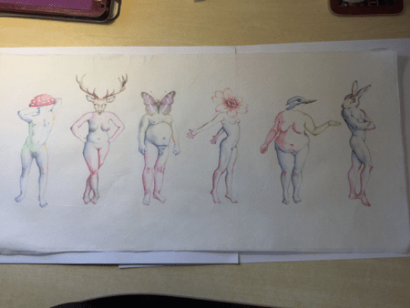 “The word diversity made me think about biodiversity. I thought that I could use biodiversity as a metaphor for human diversity, in the sense that society needs all different types of people to thrive, and is richer and more beautiful because of this. So I drew people with the heads of creatures, and in bright colours, since a rainbow of colours is strongly linked to diversity.”