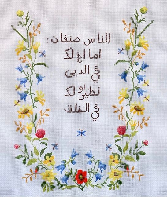 The Arabic text is a quote from Ali ibn abi Talib, a prominent figure in Islam, which translates to “People are of two types, they are either your brothers in faith or your equals in humanity”.