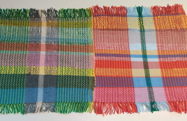 “This artwork explores the diverse ways in which a piece of fabric can be made. The wool especially the ‘school grey’ coloured section represents the traditional, whilst the use of new materials such as bright recycled plastics reflect the way in which fabrics and environmental perspectives on fashion are changing, and cross culturally in places where they rely on repurposing materials to create textiles.