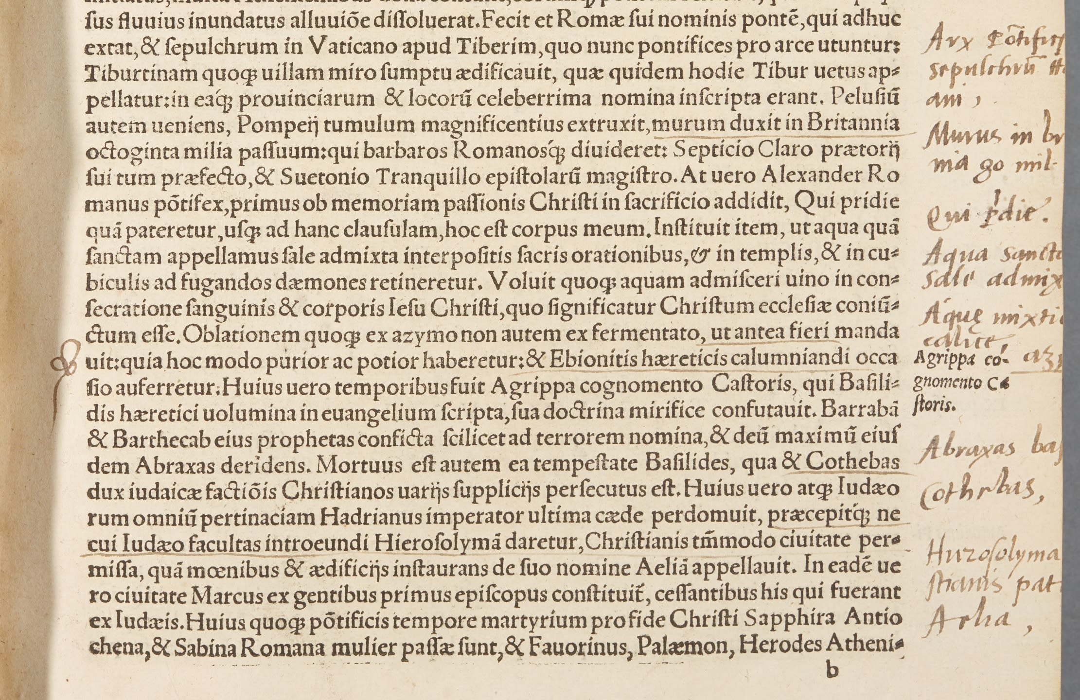 Page from the lives of the popes, one of the few books in Cosin's Library that is annotated. DUL Cosin Y.3.1/1