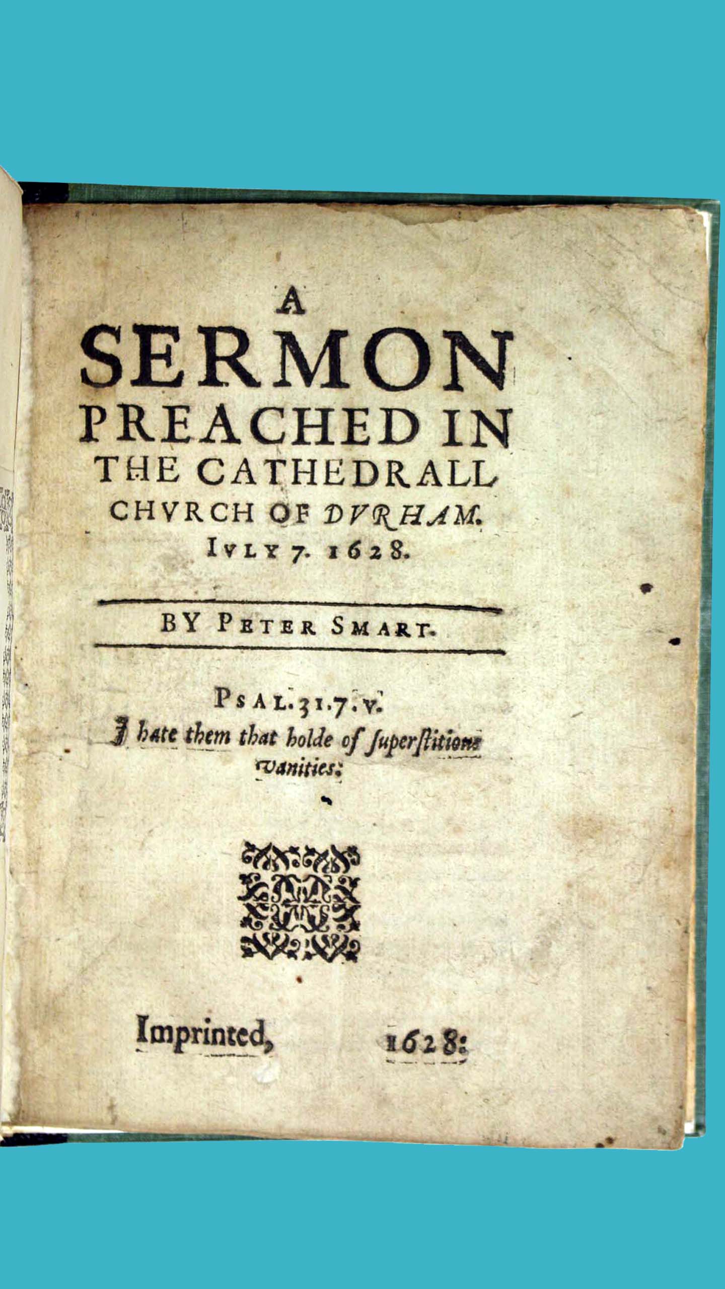 Peter Smart, A sermon preached in the cathedrall church of Durham. Iuly 7 [sic] 1628. [London]: Imprinted 1628. DUL SB 1587