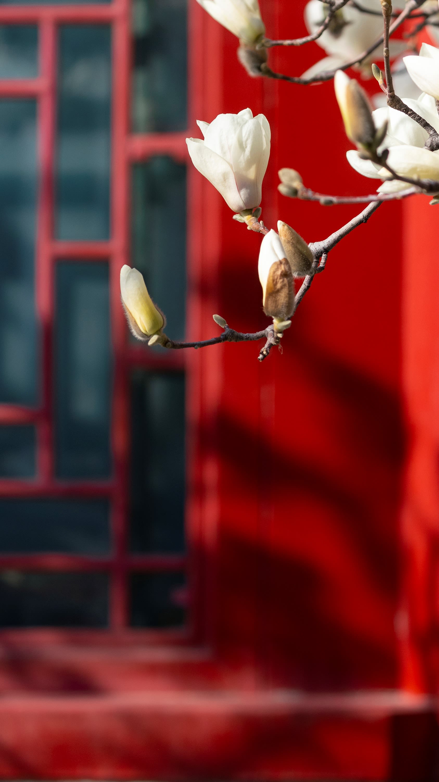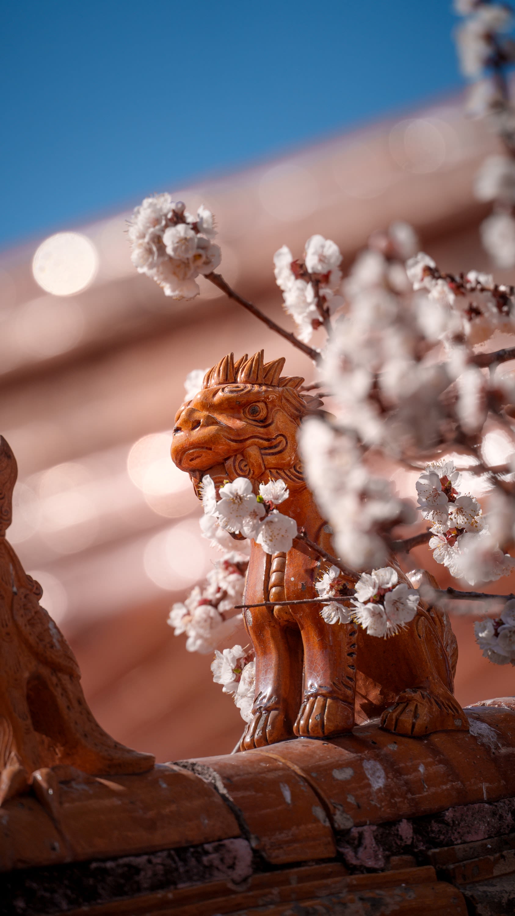 Spring blossom surrounding roof tiles. © Zhu Kai