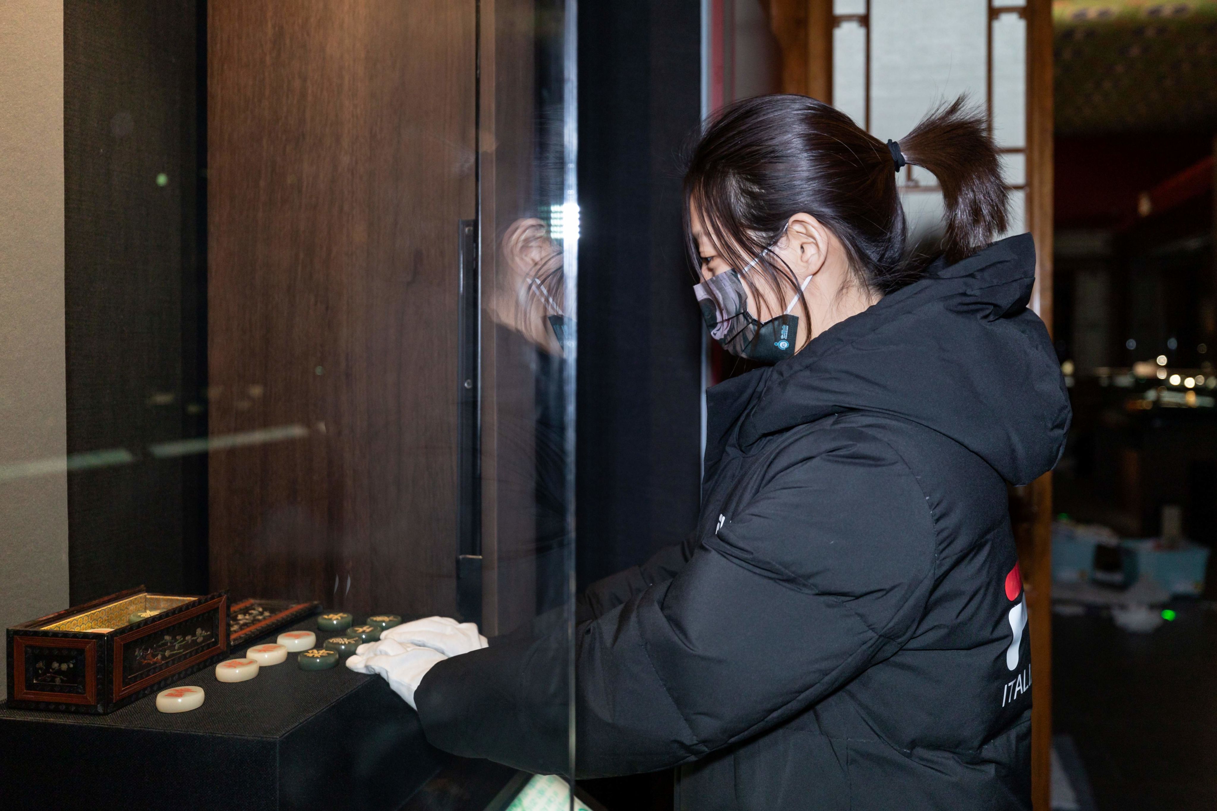 Staff placing objects carefully within a case during an exhibition installation. © Sun Wenjing