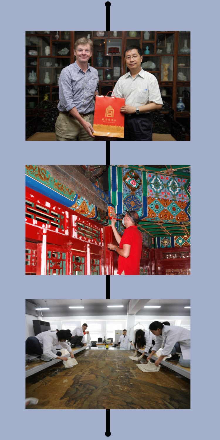 Material analysis of the hanging screens in the Fuwang Ge (Belvedere of Viewing Achievements) of the Qianlong Garden to identify the composition and condition of the artefacts. The Garden, built between 1771 and 1776 in the northeast corner of the Forbidden City, reflects Emperor Qianlong’s (1711-1799 CE) tastes and features innovative interior decorations. A major restoration project began in 2001, in collaboration with the World Monuments Fund, using traditional craftsmanship and scientific conservation techniques to renovate and preserve the Garden’s authenticity. © Si Bing