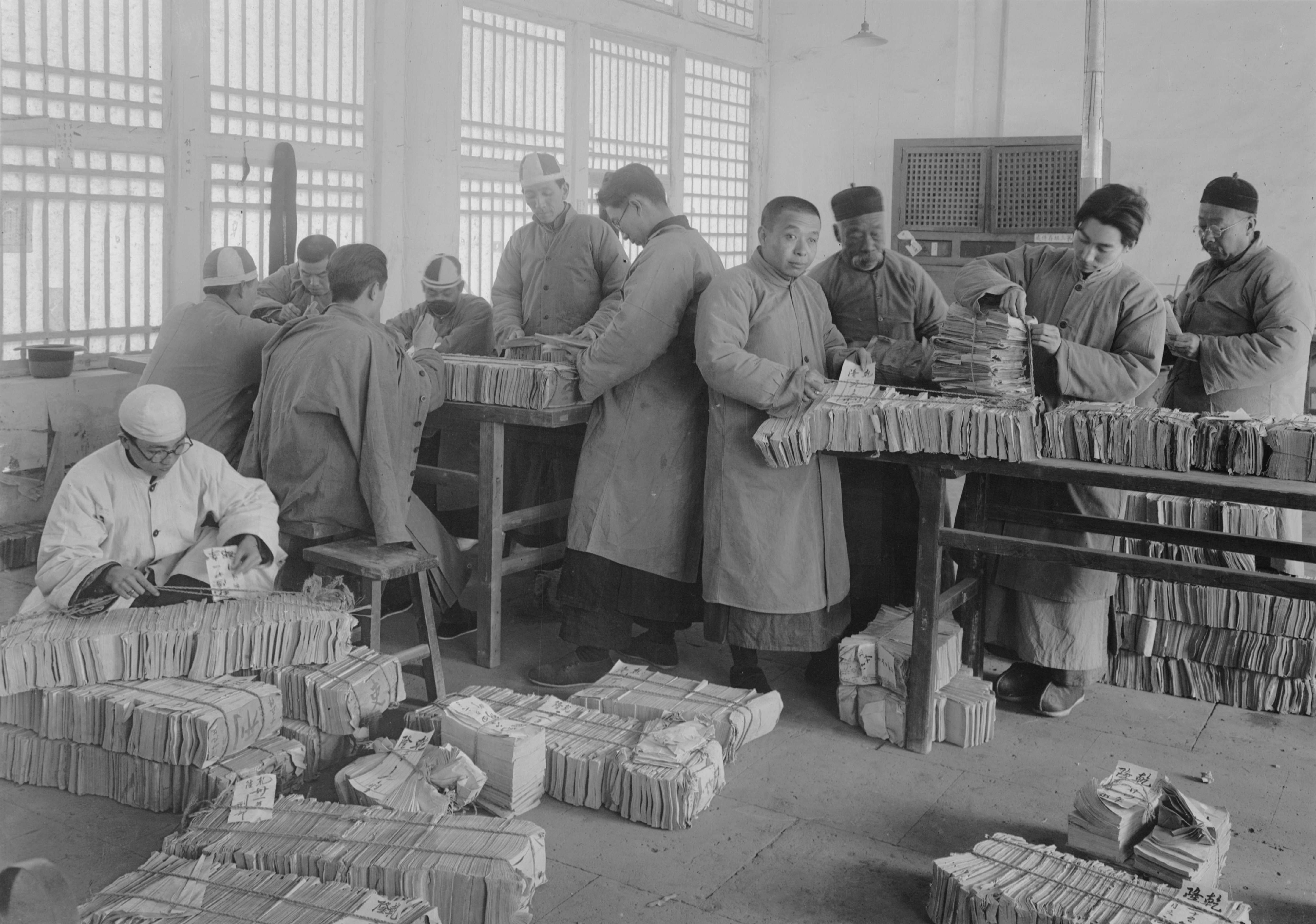 Audit of Qing archives by staff from the Department of Archives in 1931. © The Palace Museum