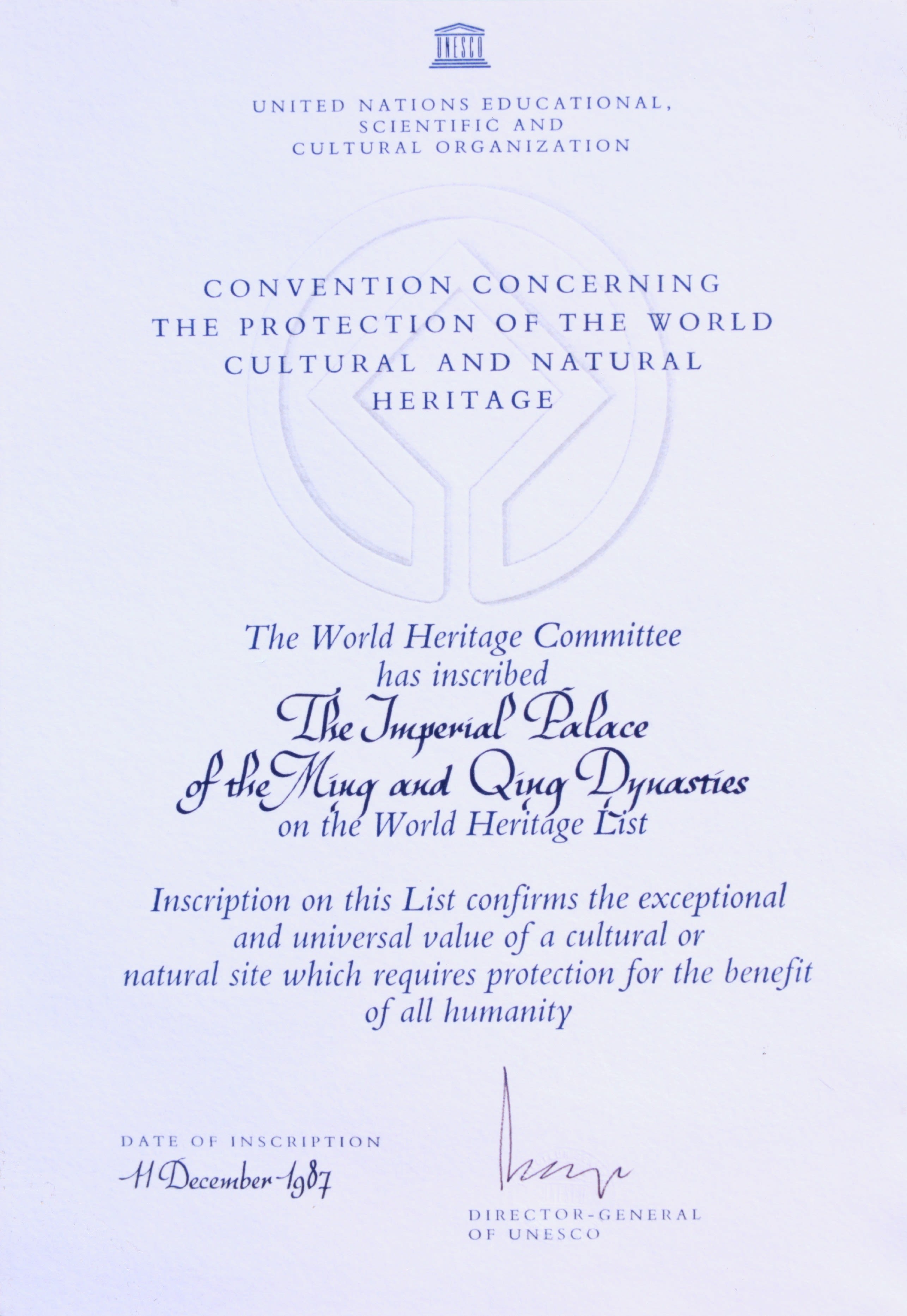 In 1987, the listing of the Palace Museum as a UNESCO World Heritage Site demonstrated global recognition of its outstanding cultural and universal value.