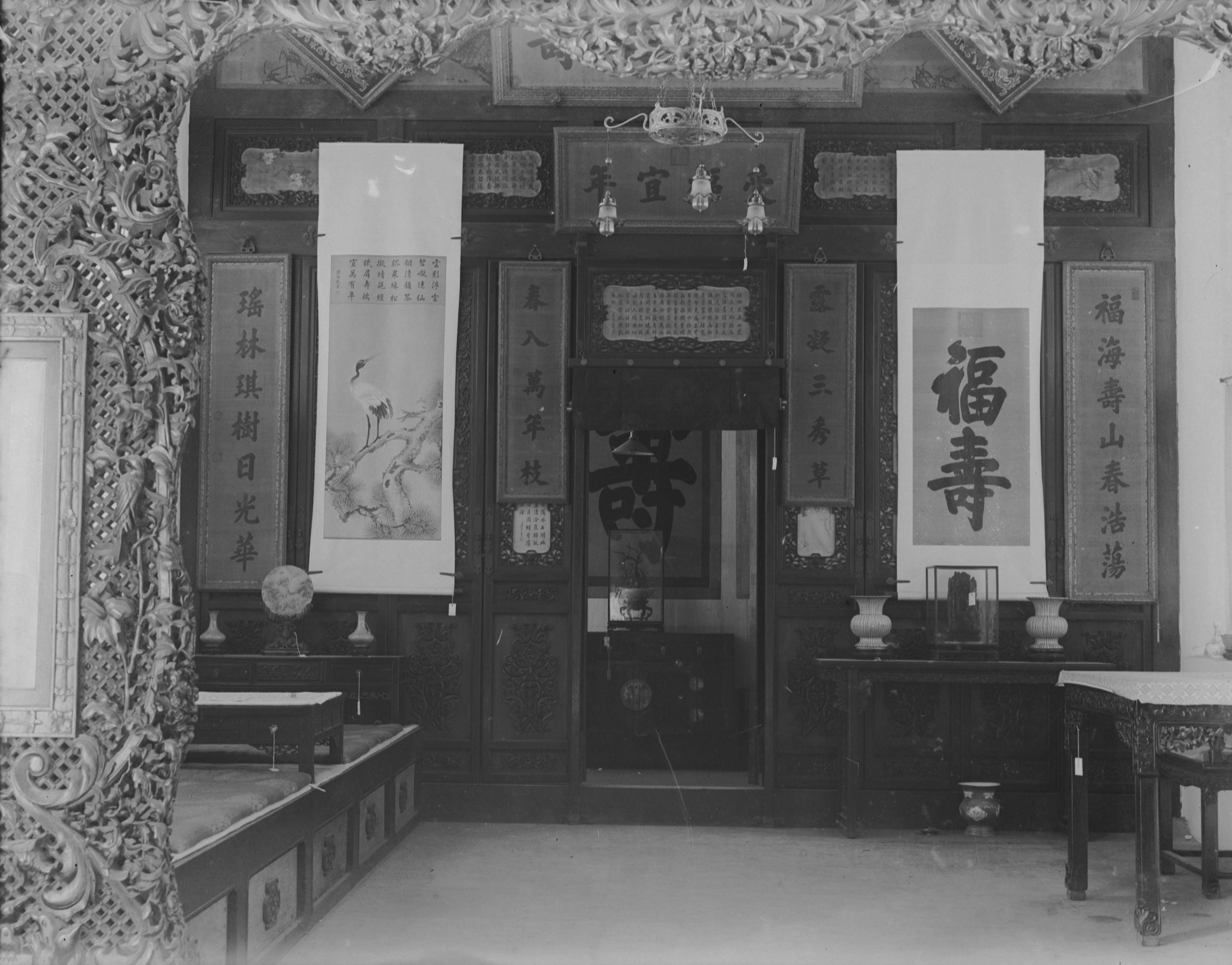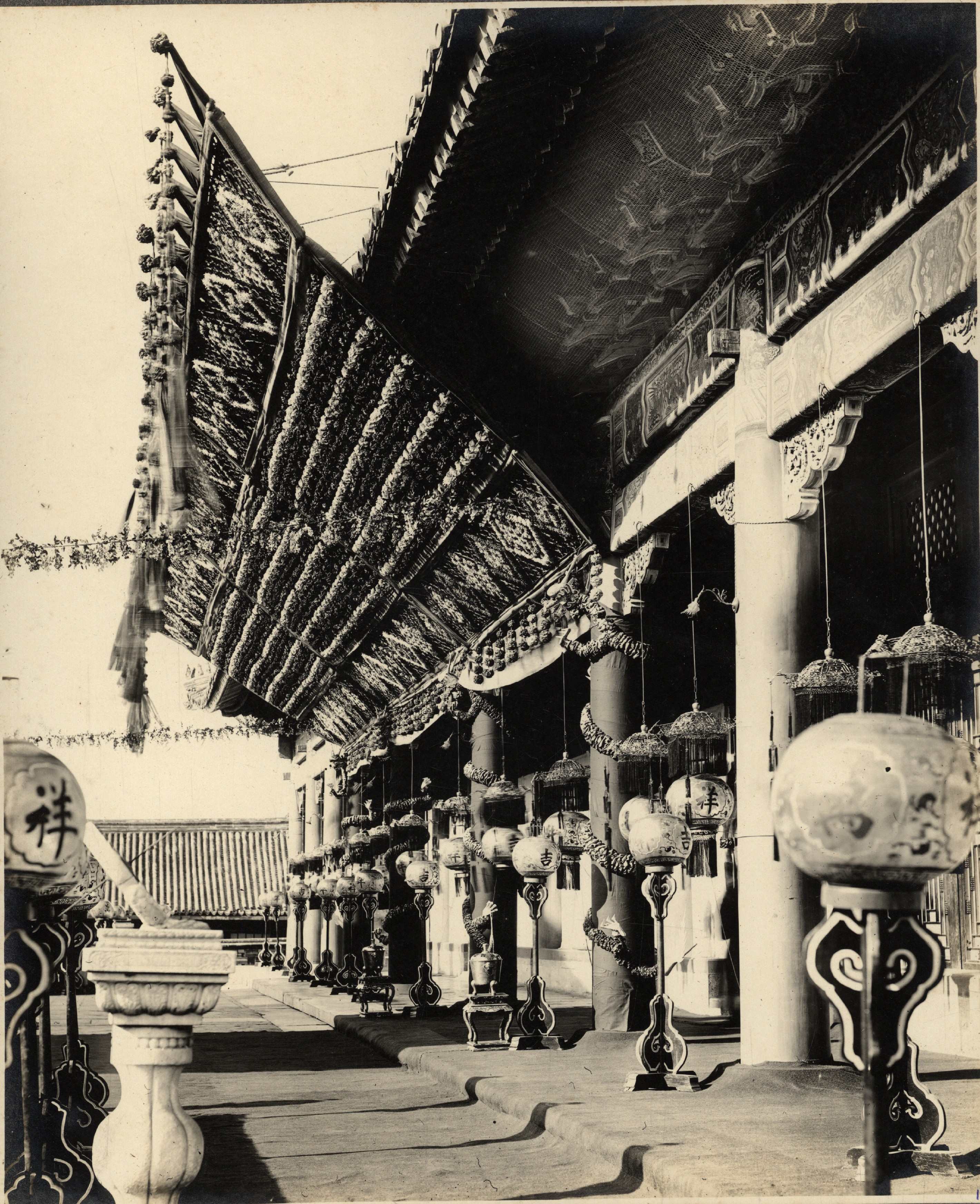 Auspicious festival drapery hanging at Kunning Gong (Palace of Earthly Tranquillity) during the final years of the Qing dynasty. Kunning is one of the many palaces and gardens that formed the Forbidden City. © The Palace Museum