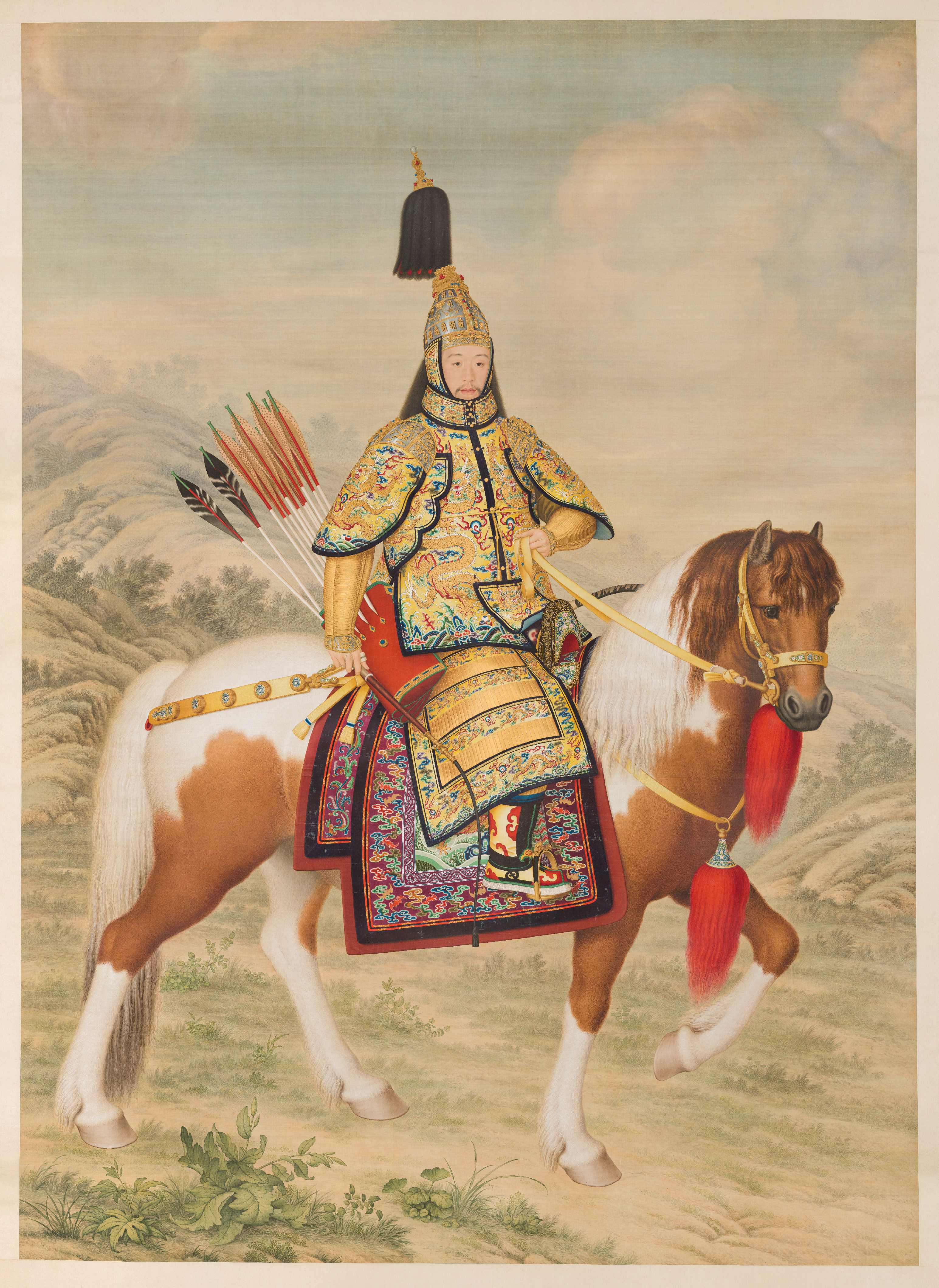 The Palace Museum provided 225 objects to the Three Emperors exhibition. One highlight is a large painting titled The Qianlong Emperor in Ceremonial Armour on Horseback. This silk hanging scroll was painted by Giuseppe Castiglione (Chinese name Lang Shining, 1688-1766 CE), an Italian Jesuit painter who served in the Chinese imperial court. This painting monumentally depicts the emperor and his horse in a manner akin to European equestrian portraiture. This glorified the Qianlong Emperor (1711-1799 CE) as both a mighty military commander and a wise ruler. © Feng Hui