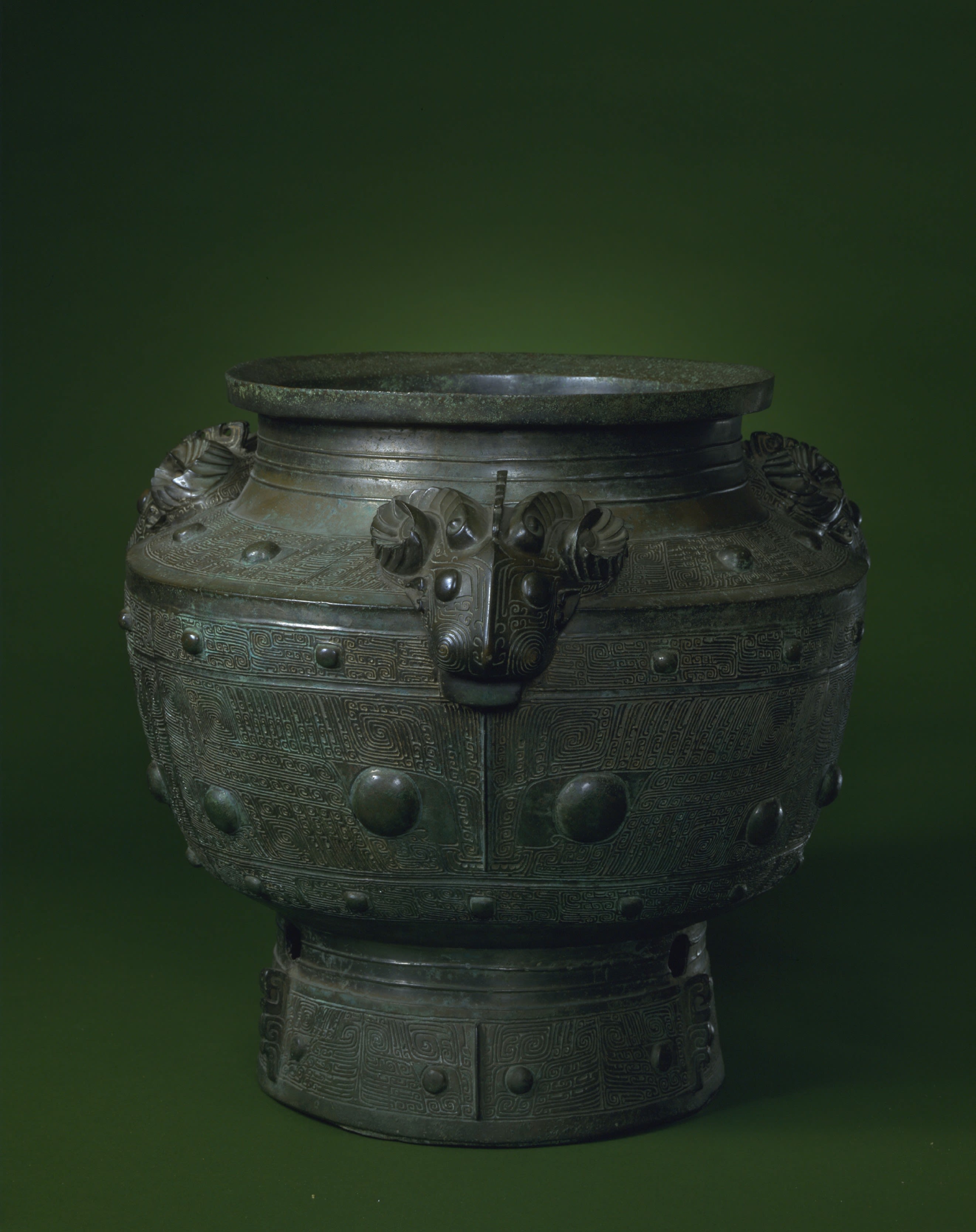 This elaborate bronze zun vessel decorated with three ram heads dates to the late Shang dynasty (c.1250-1046 BCE). It was purchased in 1956 with funding support from the government. © Hu Chui