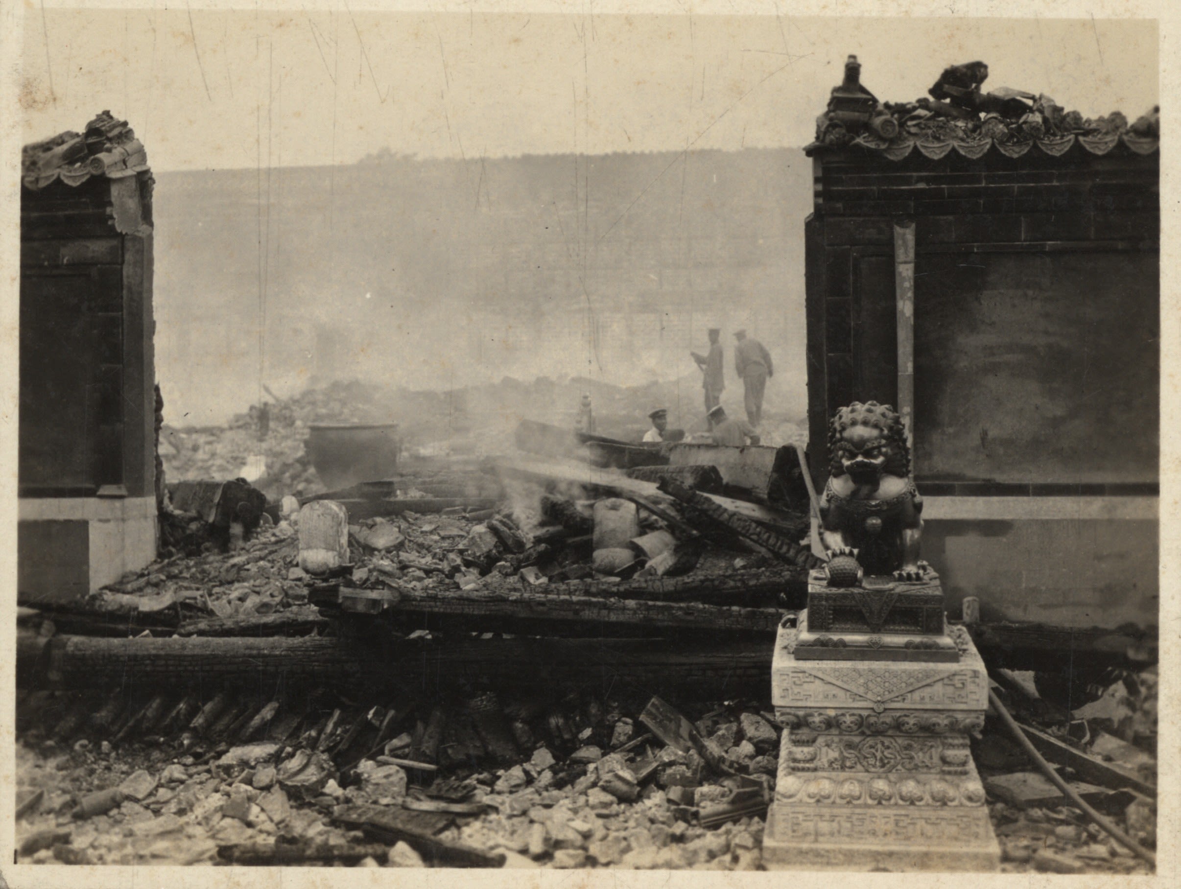 Remains of the Jianfu Palace Garden complex after a fire in 1923. The complex had been a store for imperial treasures since the early 1800s. This major incident was one of the events that forced Puyi to leave the Forbidden City. © The Palace Museum