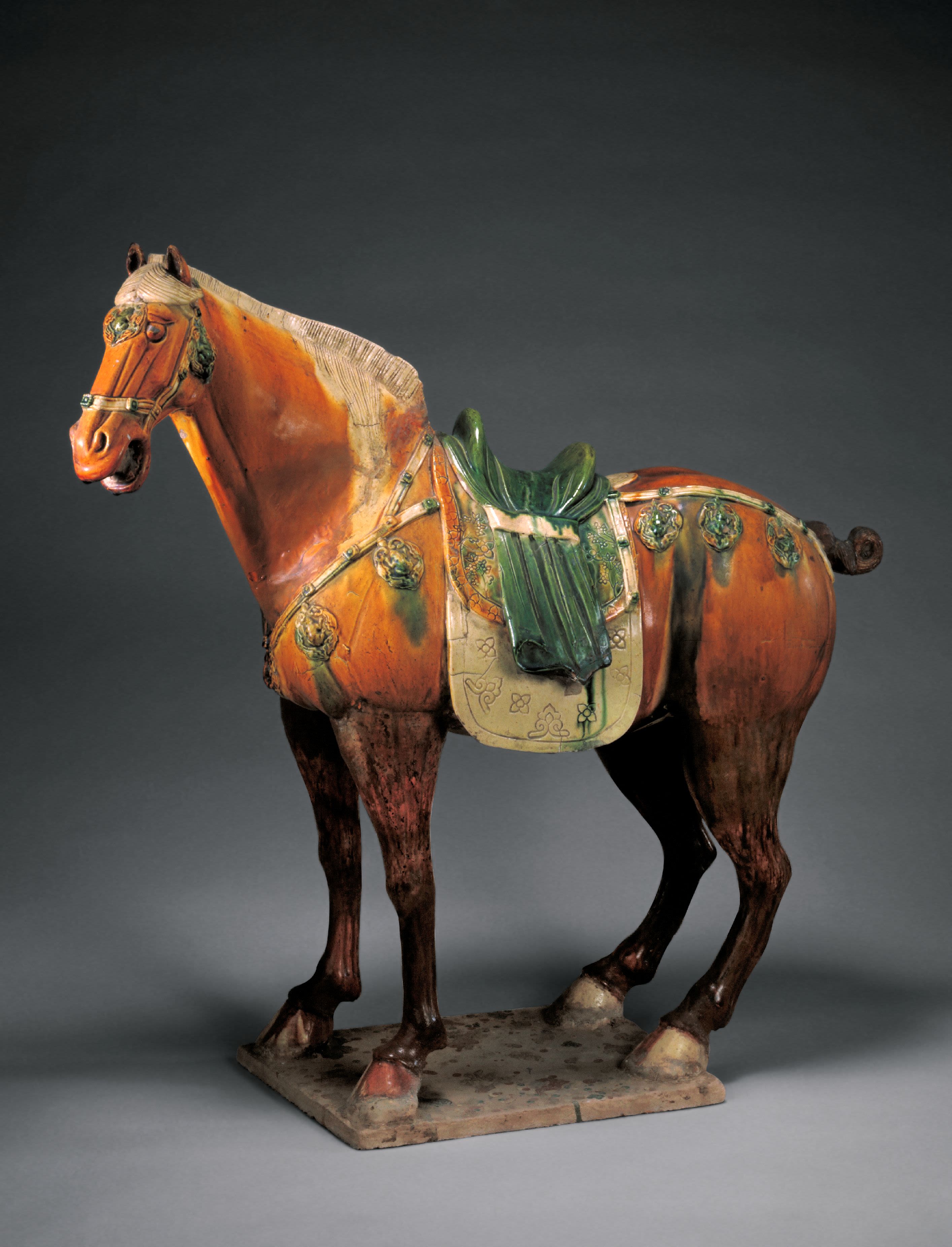 Three-colour glazed horse from the Tang dynasty (618-907 CE). This horse figurine is part of a large donation by Zheng Zhenduo (1898-1958), a writer, translator and pioneer in cultural heritage work. © Zhao Shan
