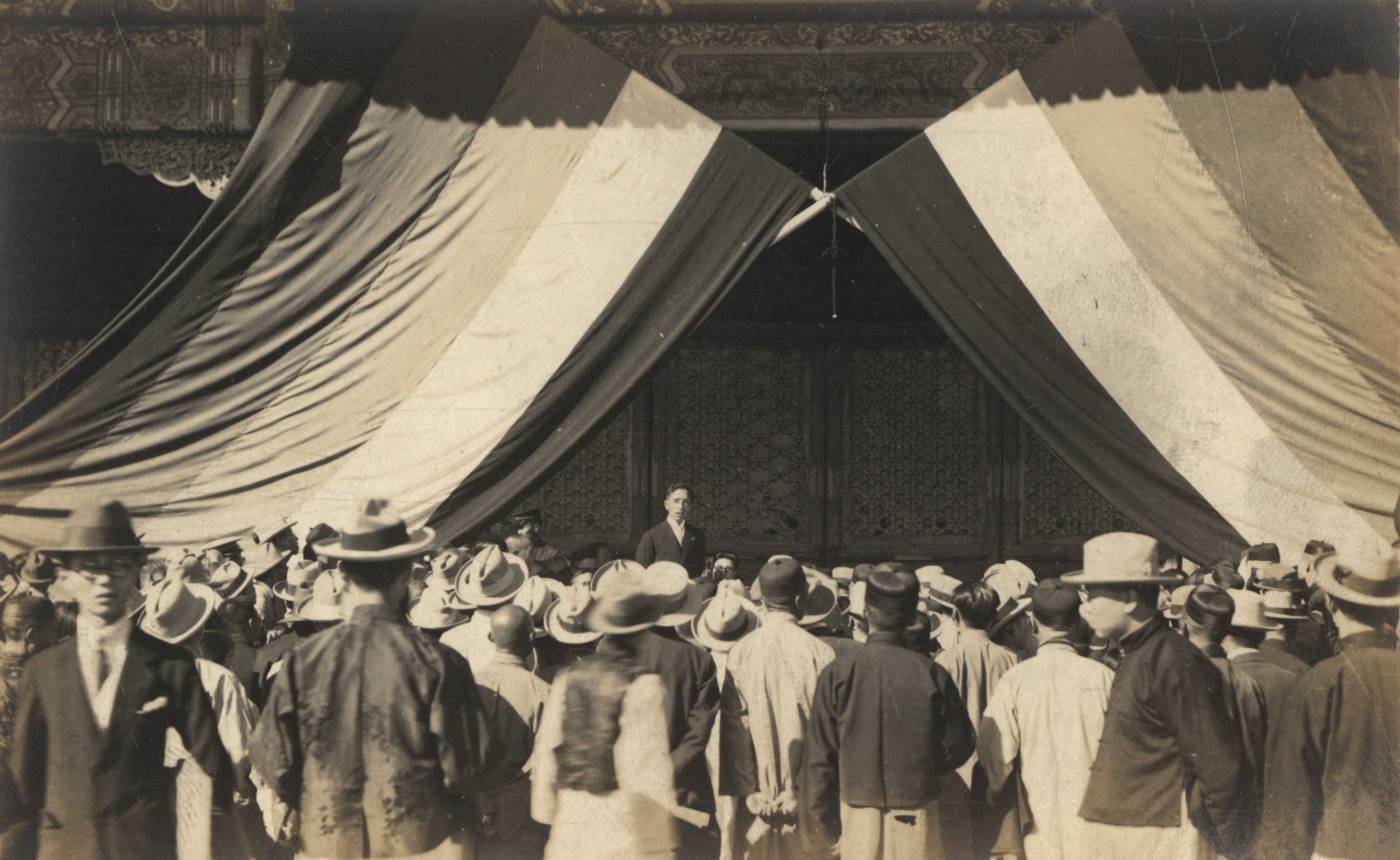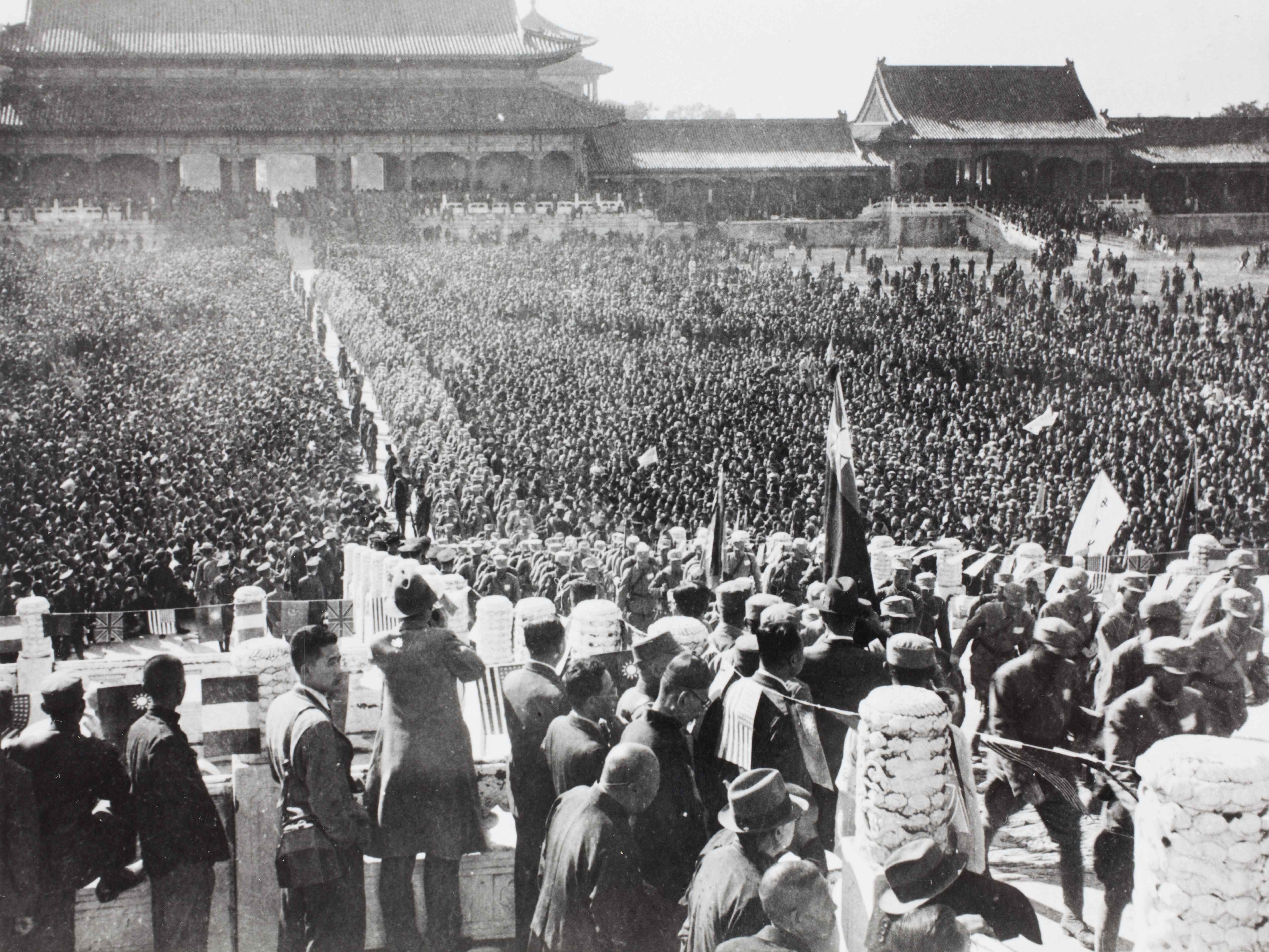 Opening Ceremony on the founding of the Palace Museum in front of the Taihe Dian (Hall of Supreme Harmony). Huang Fu, Acting Premier of the Republic of China and a trustee of the Museum, gave a speech. © The Palace Museum