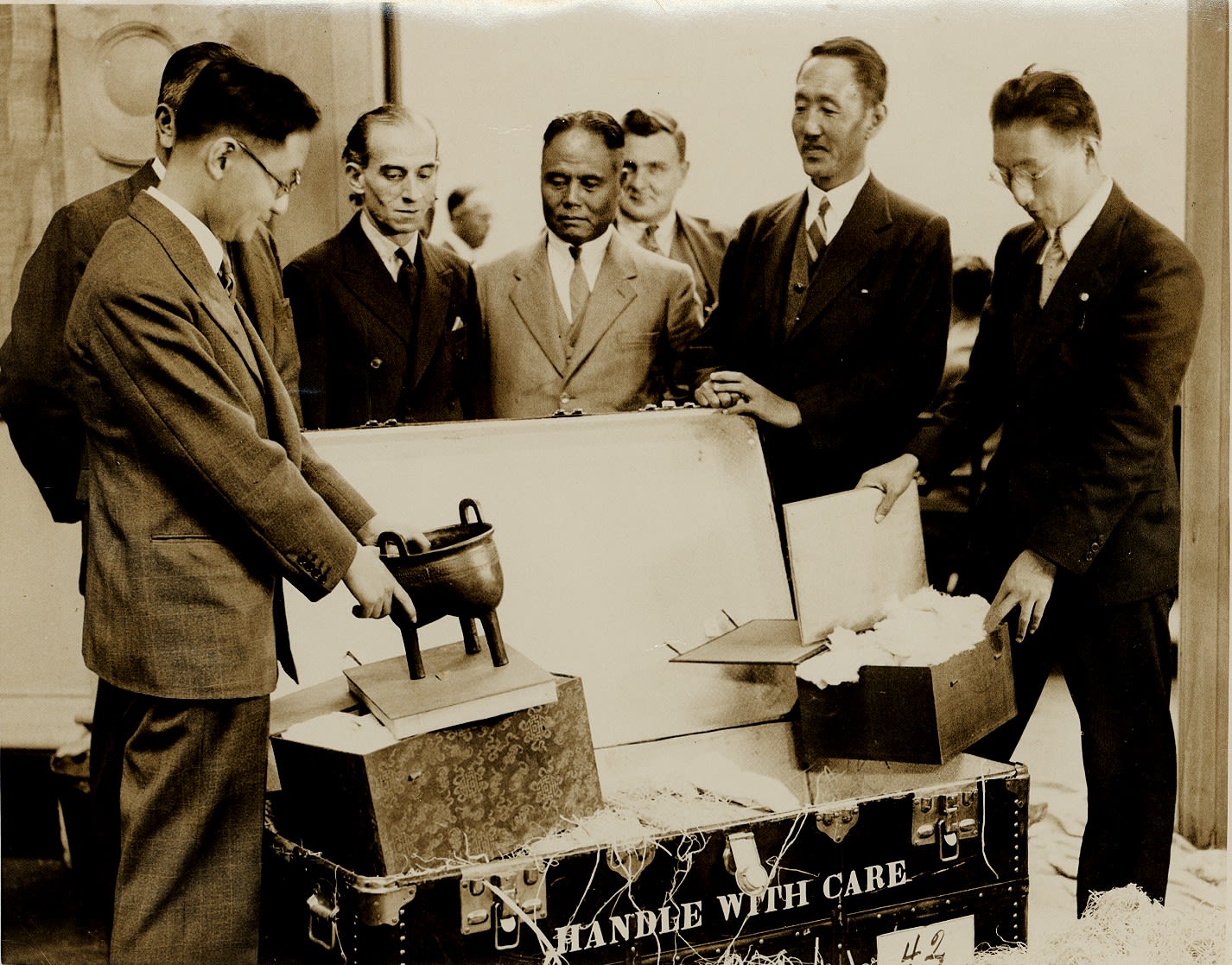 With the safe arrival of the collection crates at the Royal Academy of Arts in London, a ceremony was held on 17th September 1935 to open the crates, check against the inventory, and audit the condition of the objects. This was attended by representatives from both the Chinese and British organisation committees. © The Palace Museum