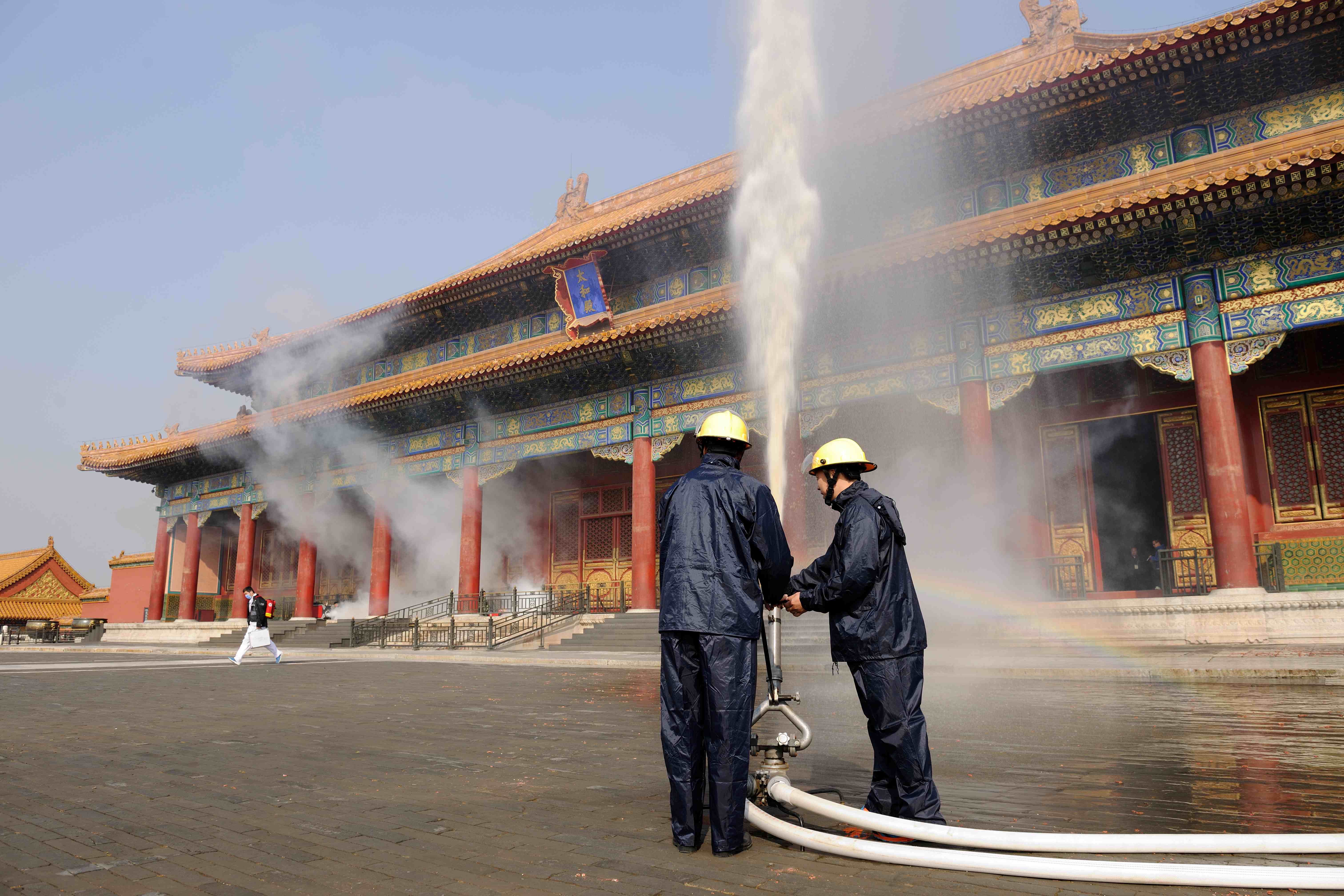 Fire drills are vital for the Palace Museum, the largest wooden historical building complex in the world. These practices ensure an efficient emergency response, safeguard the architecture, artefacts, and people, and ensure the long-term protection of cultural heritage. © Jin Yueping