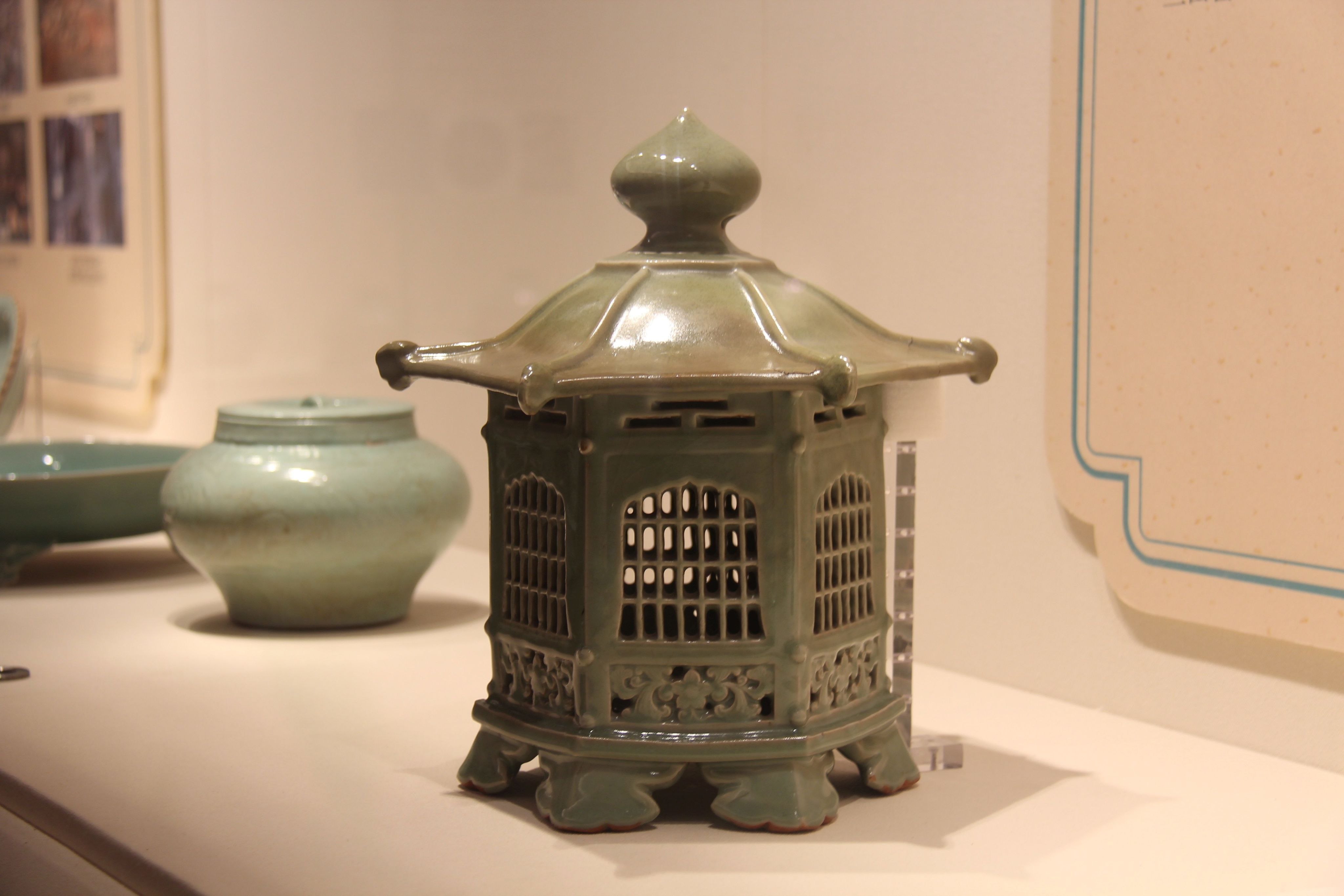 This incense burner from the Oriental Museum was a highlight in the Longquan of the World exhibition. The lantern-shaped incense burner is the only known Longquan-type celadon example of its kind in the world. © Wang Guangyao