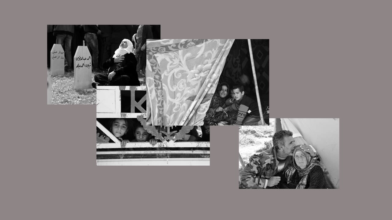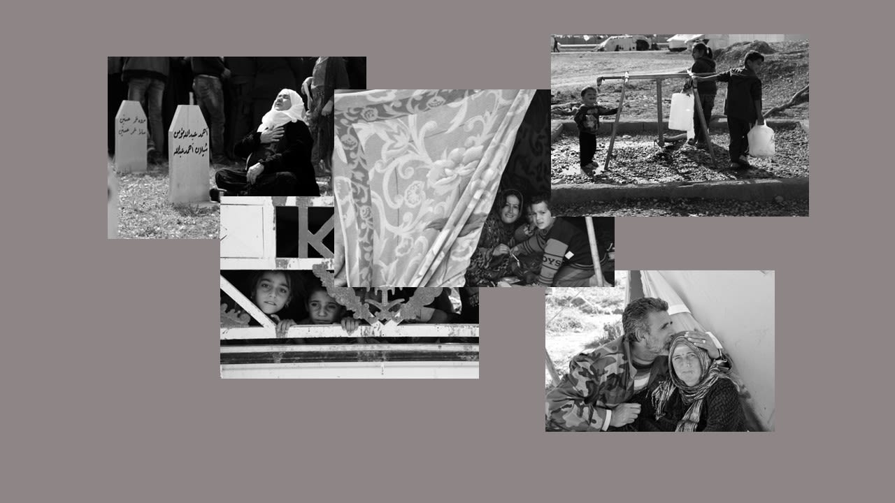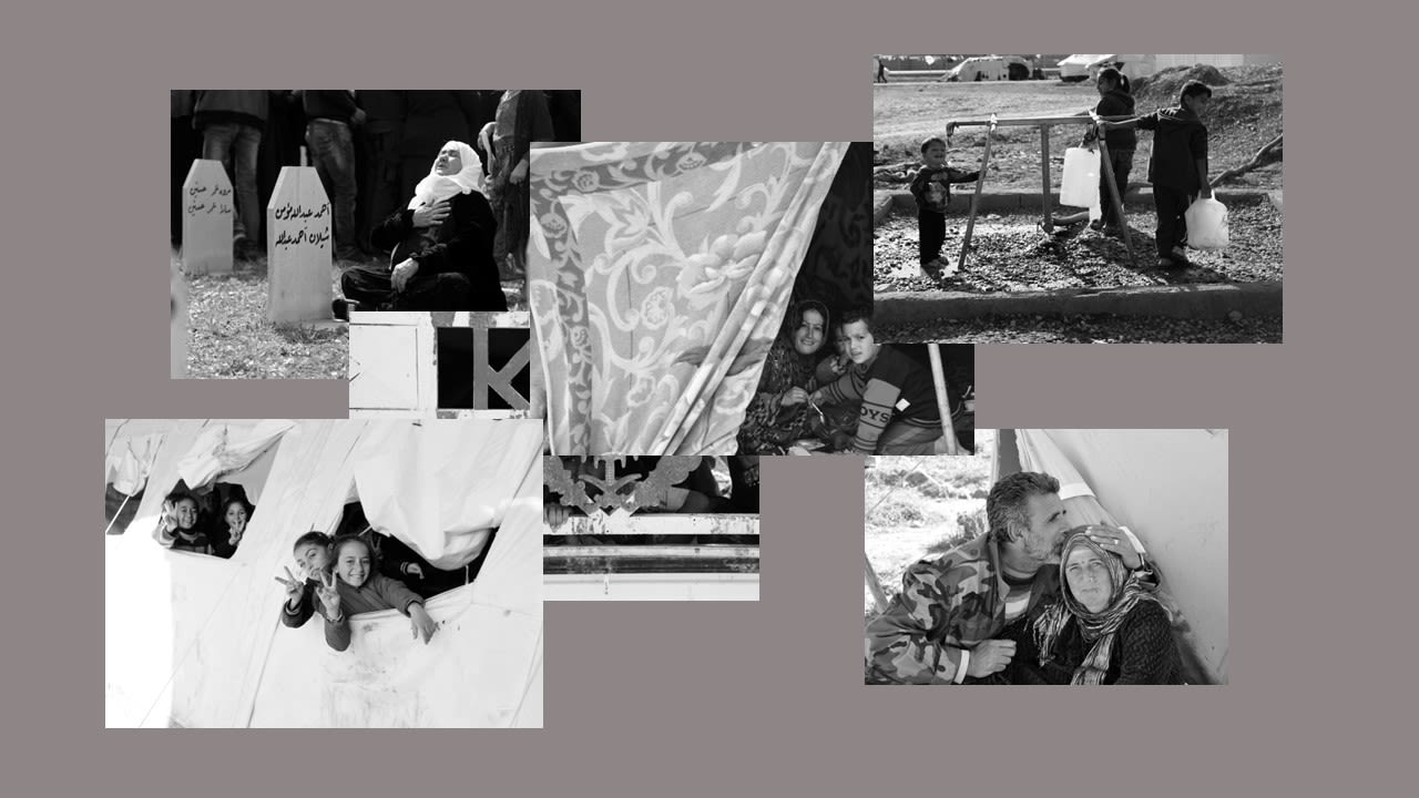 These images show the consequences of war and the realities of being a refugee. They also show hope and the search for a peaceful life.