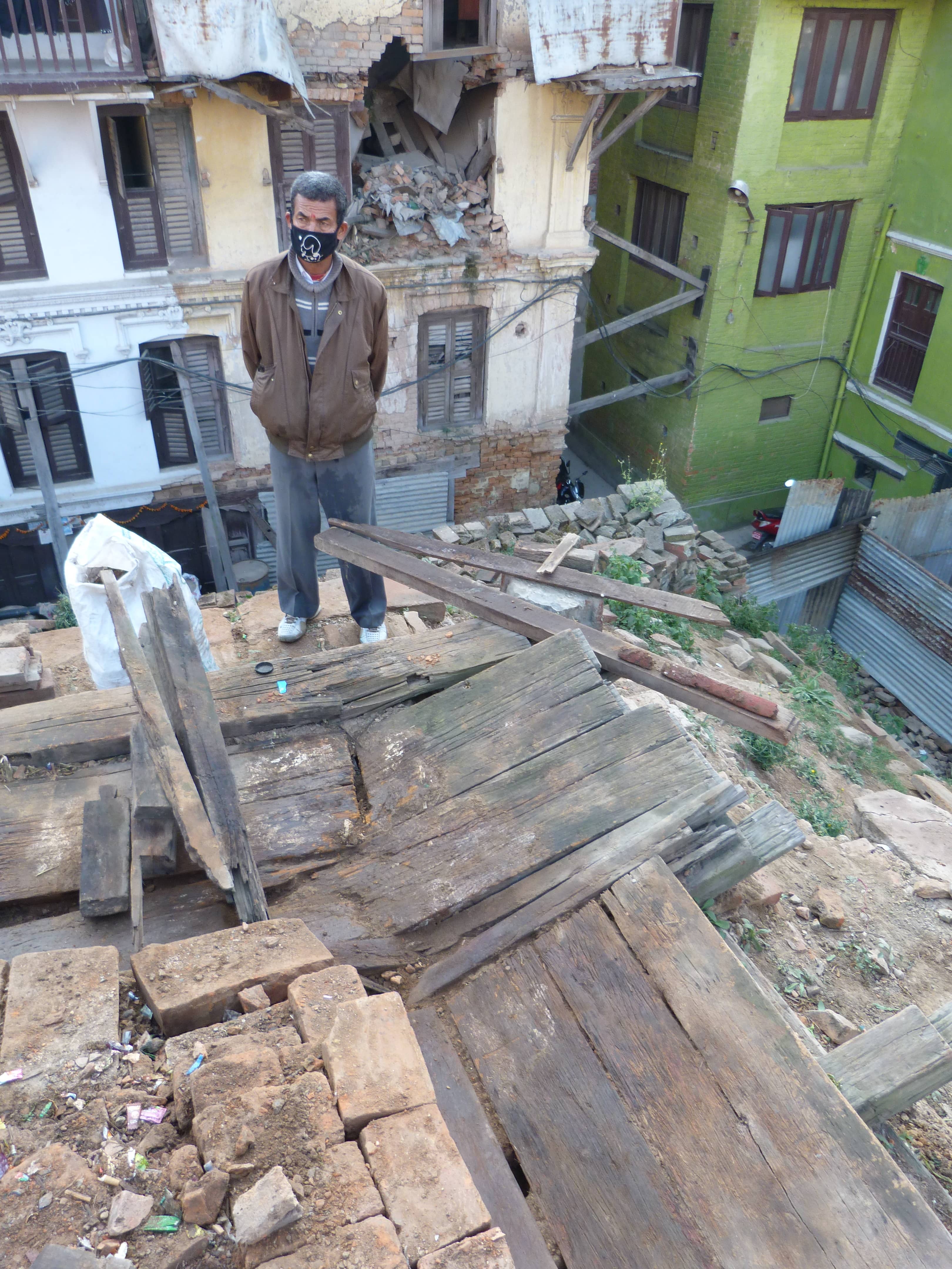 फ्रिक गल्लीमा अस्थायी टेकाहरु, काठमाण्डौ (फोटोः दुरहाम यूनेस्को सम्बन्धी अध्यक्ष)