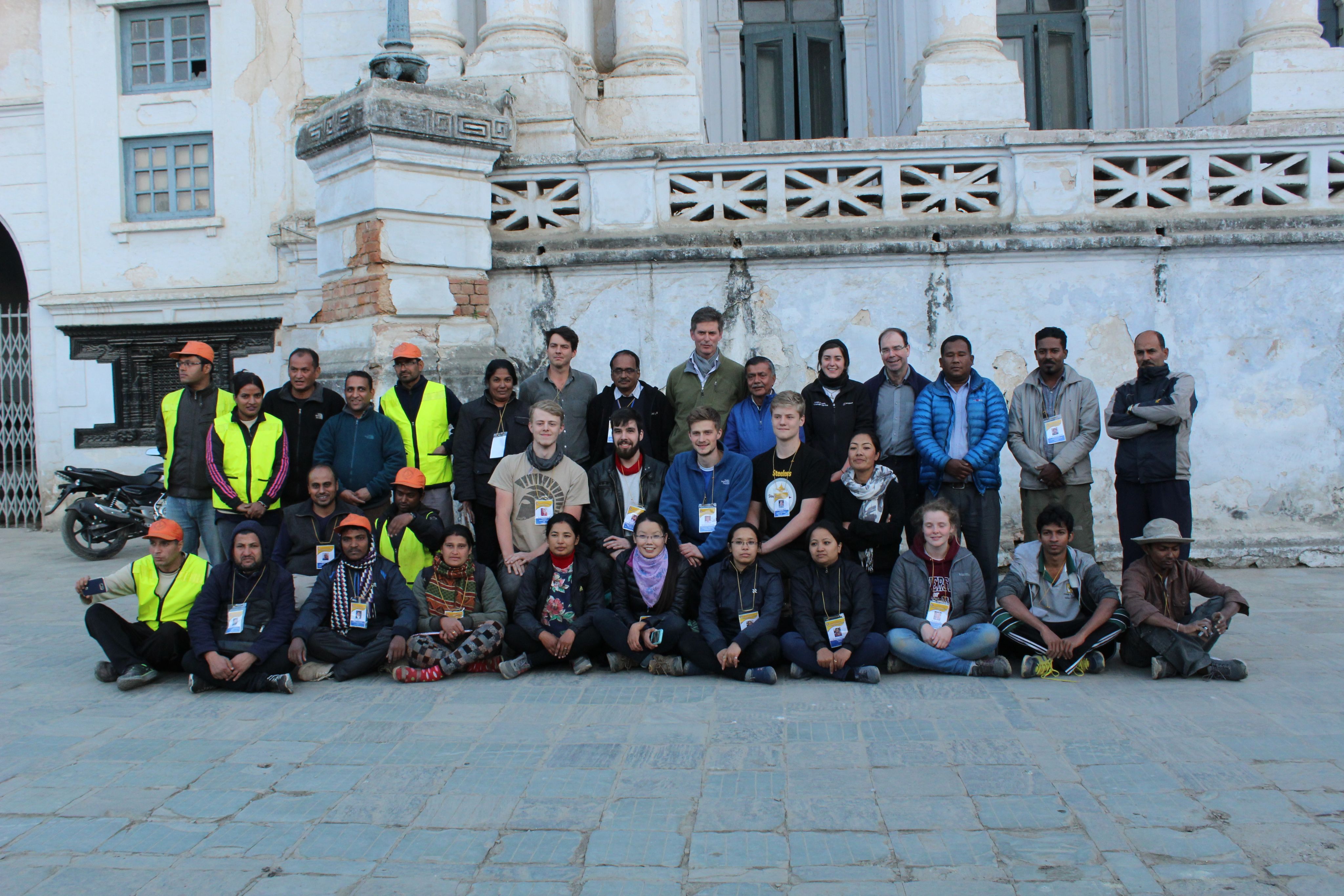 भूकम्पपछिको विपत्ति व्यवस्थापनमा कार्य गरेको पुरातात्विक टोली, २०१६ (फोटोः दूरहाम यूनेस्कोका अध्यक्ष)