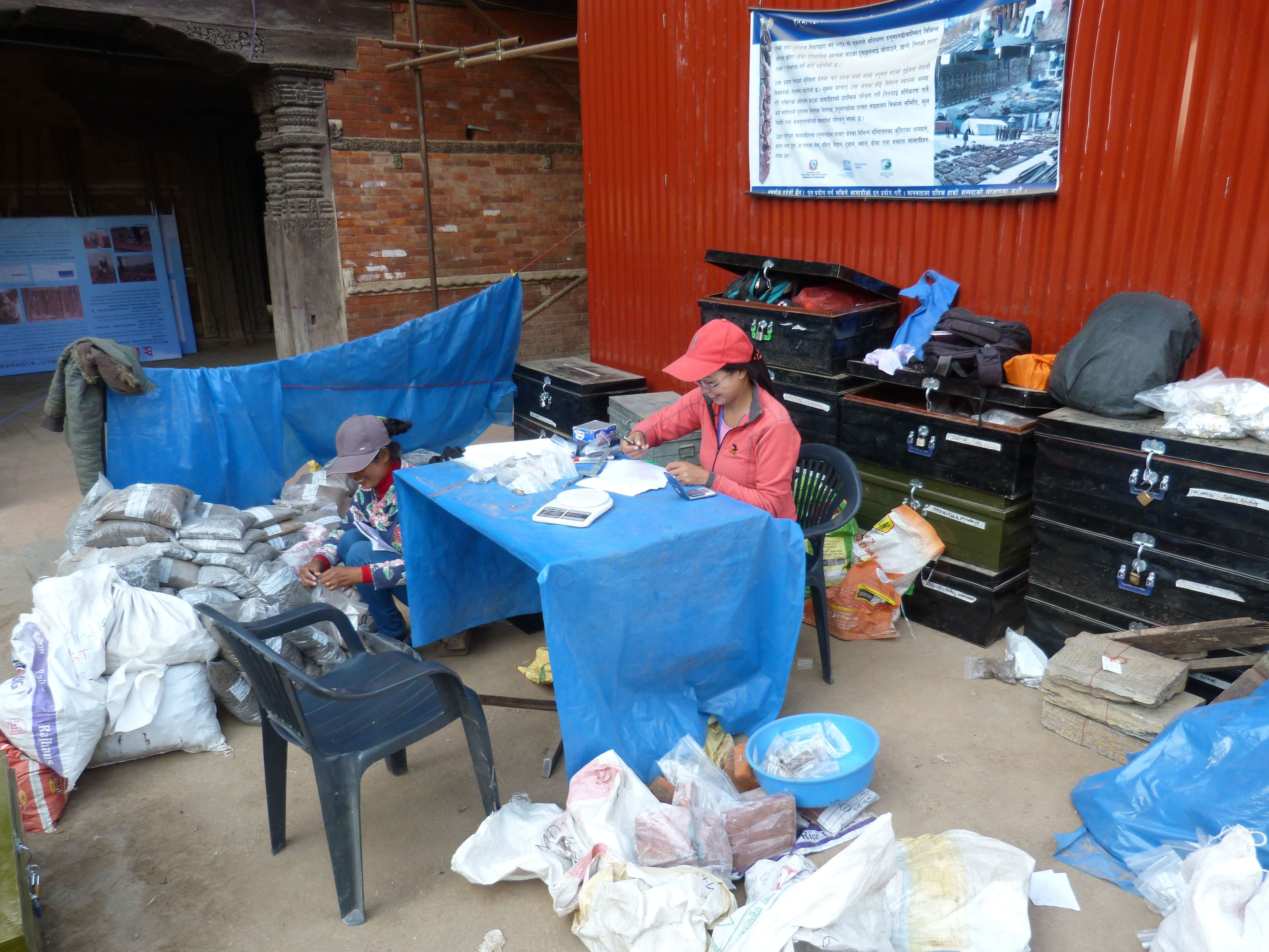 काष्ठमण्डपबाट प्राप्त वस्तुहरु अभिलेखीकरण गरिदै (फोटोः दूरहाम विश्व विद्यालयका यूनेस्को सम्बन्धी अध्यक्ष)