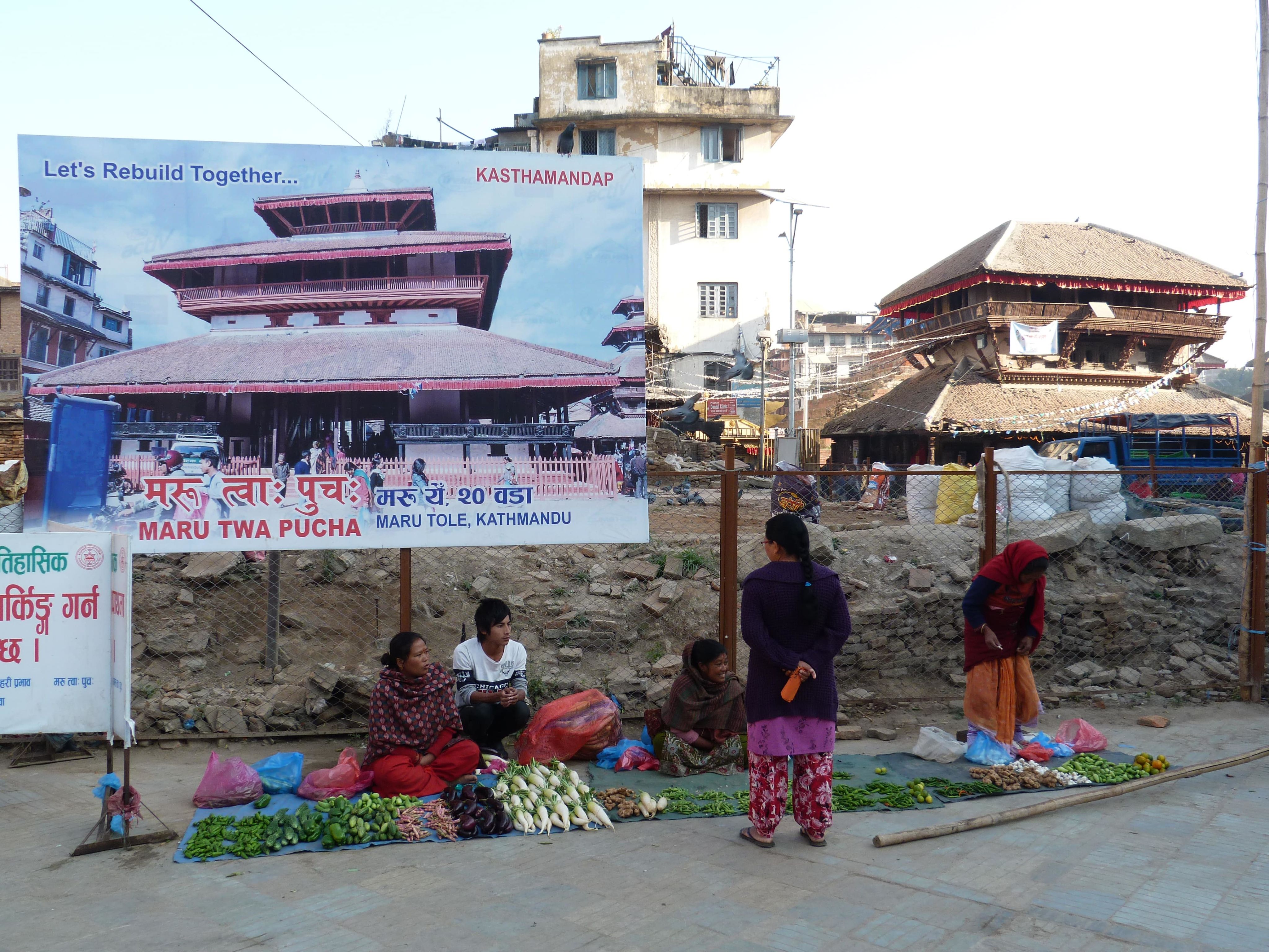 २०७२ को भूकम्पछि काष्ठमण्डप र यसको विगतको पुनर्निर्माण