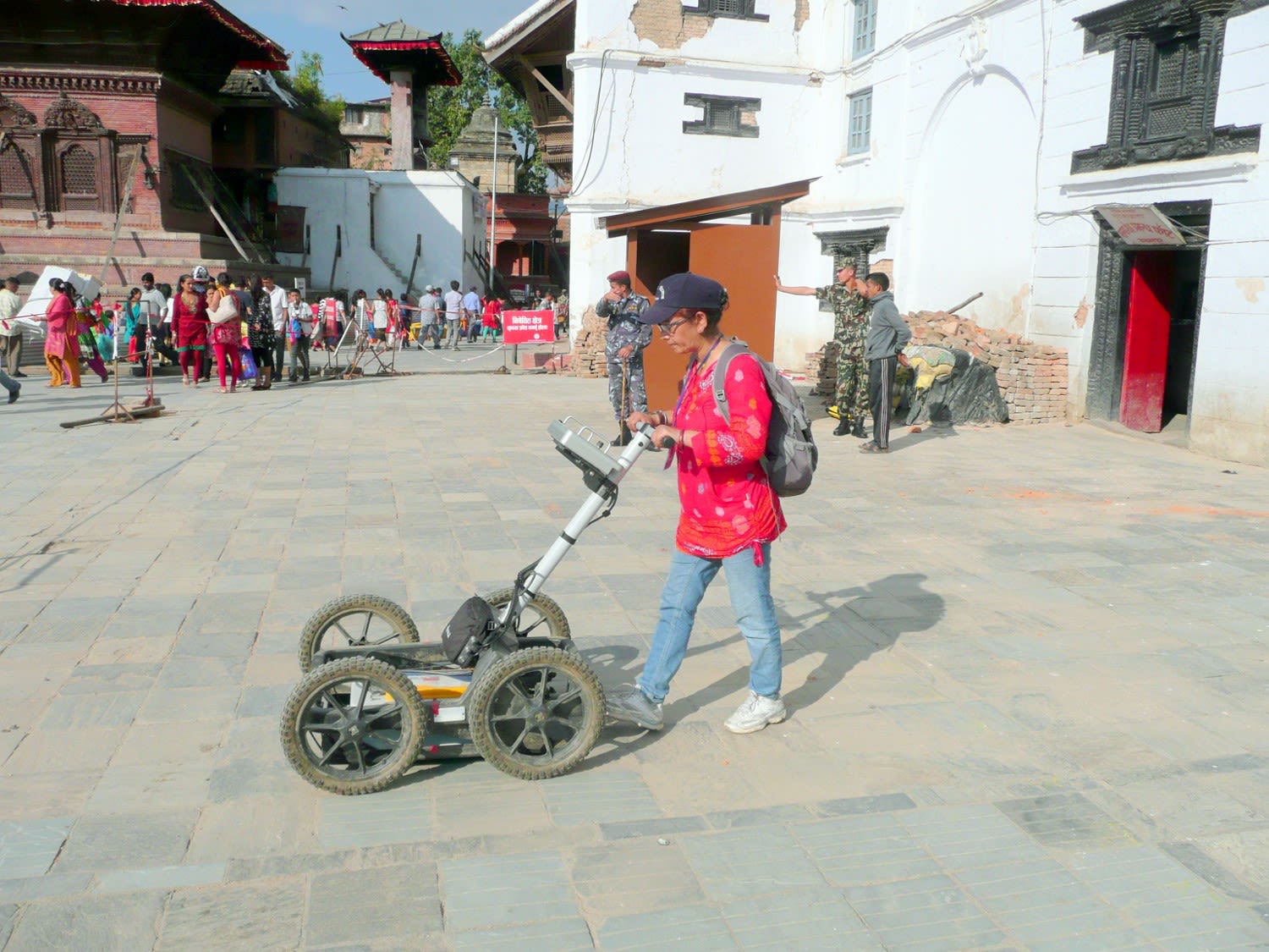 हनुमानढोका दरवार परिसरमा गरिएको जी.पी आर. सर्वेक्षण। (फोटोः दूरहाम यूनेस्कोका अध्यक्ष)
